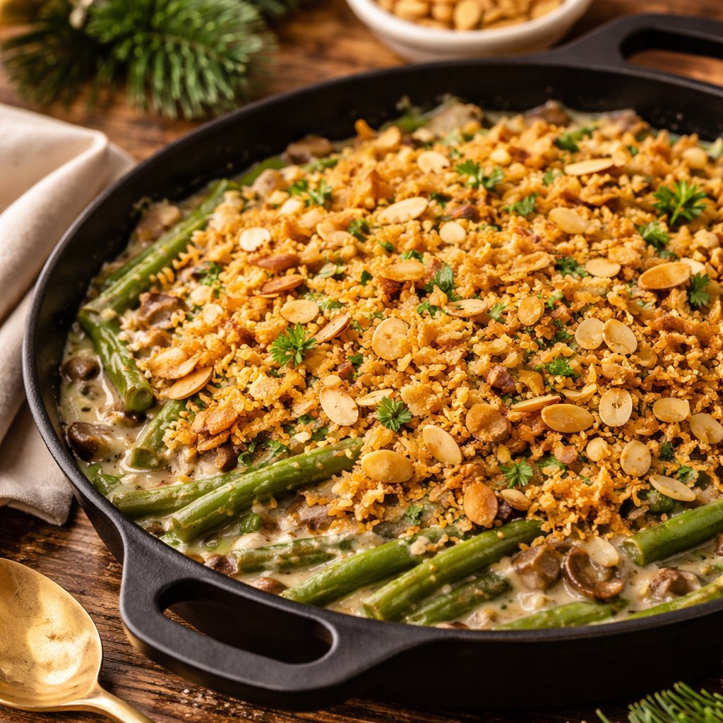 This almond‑crunch green bean casserole updates a beloved classic without losing its soul. The homemade sauce ensures fresh flavor, while the toasted almonds and panko provide a sophisticated crunch. Yet, the dish still pays homage to the original 1955 creation that has become an enduring symbol of American holiday gatherings (Origin of a Dish: Sweet Potato Casserole with …).